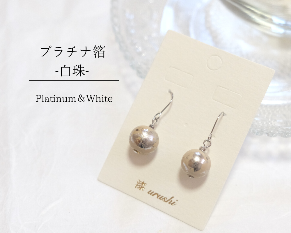 天然うるし珠イヤリング HAKU プラチナ&白珠