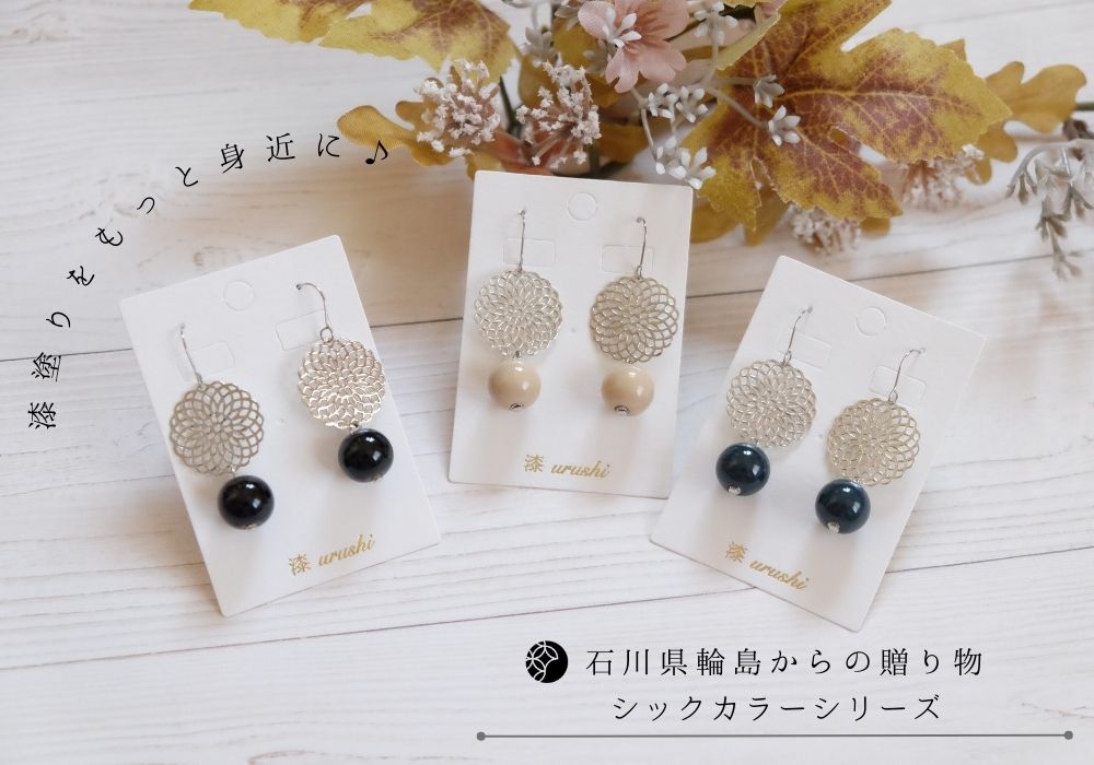 石川県輪島からの贈り物 天然うるし珠イヤリング 花いろ 《シックカラー・黒 Black》